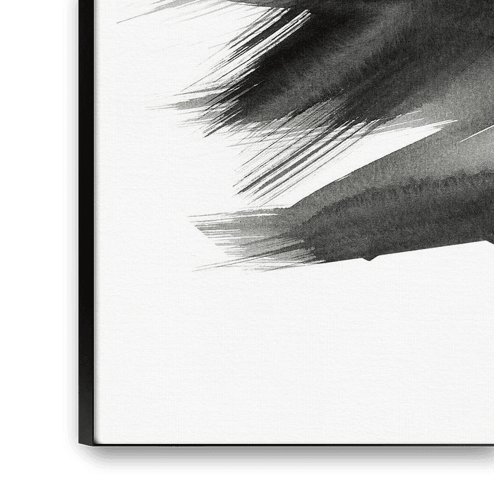 Schwarzer minimaler Pinselstrich abstrakt. Die Komposition konzentriert sich auf einen einzigen, kühnen und fließenden schwarzen Pinselstrich, der sich in einer ausdrucksstarken, geschwungenen Kurve über das Papier erstreckt. Der Pinselstrich wirkt spontan und doch absichtlich, mit sichtbarer Textur, die die Kraft einfacher, aber dynamischer Linien hervorruft. Der umgebende Raum ist offen und unausgefüllt, was das Gefühl des Minimalismus verstärkt und dem kühnen Pinselstrich erlaubt, die Aufmerksamkeit des Betrachters zu dominieren. Das Schwarz vor dem weißen Hintergrund erzeugt einen starken Kontrast, der die Kraft und Bewegung des Pinselstrichs selbst unterstreicht. Dieses Werk ist ein Beispiel für die Schönheit des Minimalismus, bei dem das Fehlen übermäßiger Details die emotionale Tiefe und Energie der Linie hervorhebt.