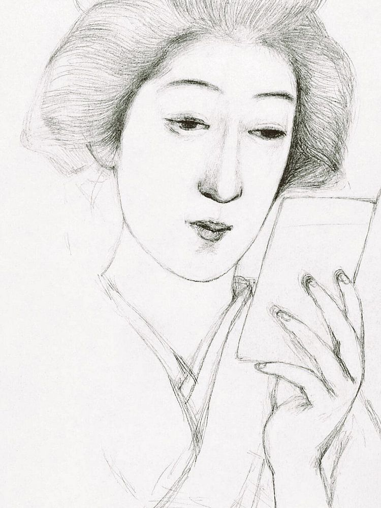Studie einer sitzenden Frau mit Spiegel von Goyo Hashiguchi (Anfang 20. Jahrhundert)