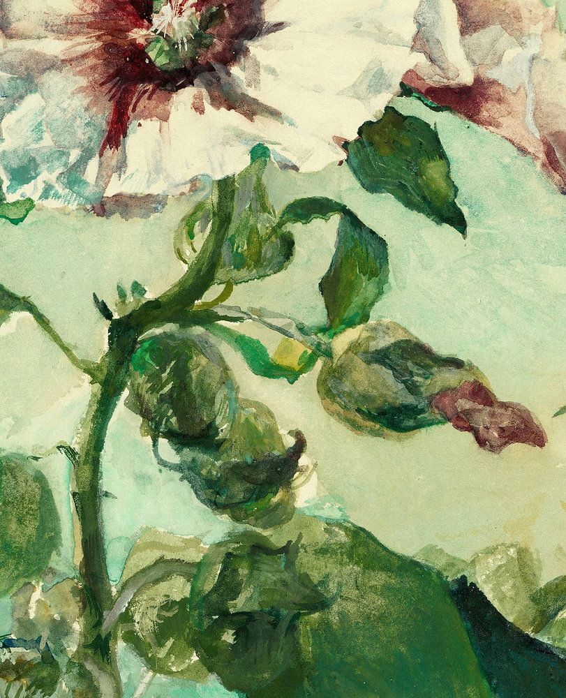 Studie über rosa Stockrosen im Sonnenlicht, aus der Natur, John La Farge