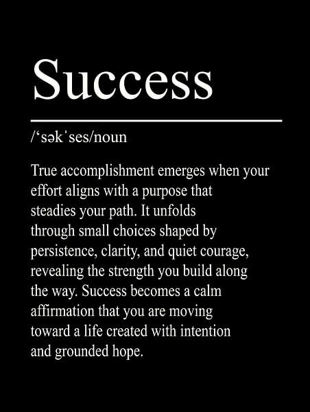 Das Wort Success steht für Erfüllung, Ausdauer und bewusstes Voranschreiten. Dieses typografische Definitionsposter vermittelt Ruhe, Klarheit und die Kraft stetiger Entwicklung.