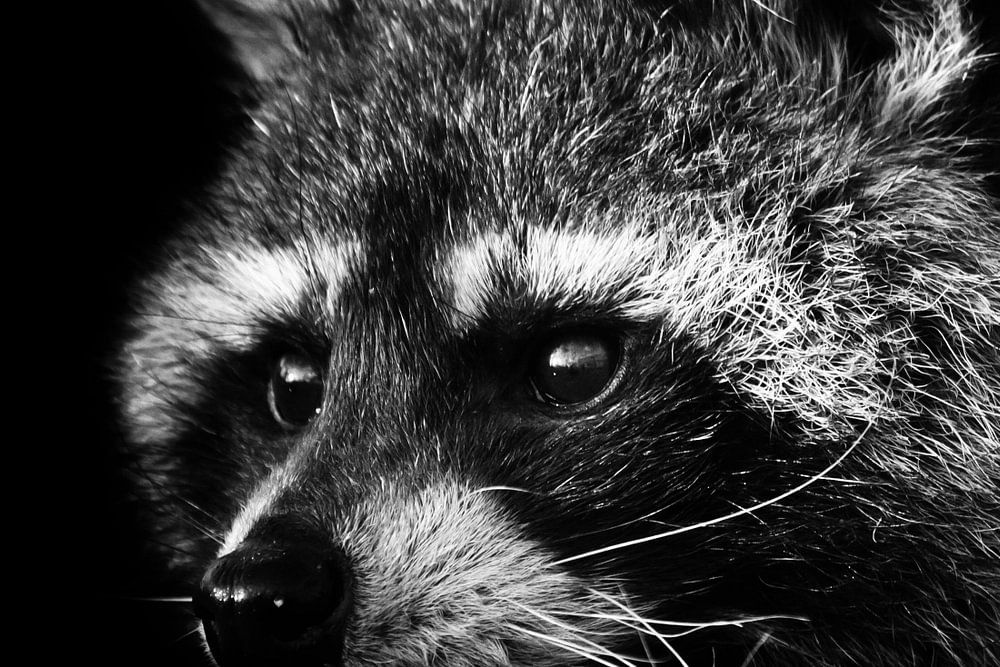 Süßer flauschiger kleiner Tier-Waschbär, schwarzer Hintergrund
