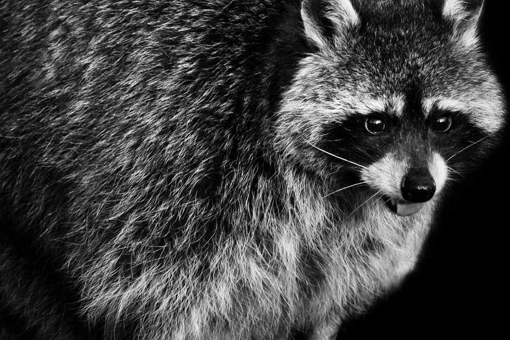 Süßer flauschiger kleiner Tier-Waschbär, schwarzer Hintergrund
