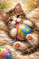 Ein lebendiges und herzerwärmendes Kunstwerk, das ein verspieltes Kätzchen zeigt, das einen bunten Ball hält – ein Symbol für Freude und Neugier. Die reichhaltigen Texturen und der dynamische Pinselstrich verleihen dem Bild Tiefe und Bewegung, während die leuchtenden Farben für eine fröhliche Atmosphäre sorgen. Dieses Werk eignet sich…