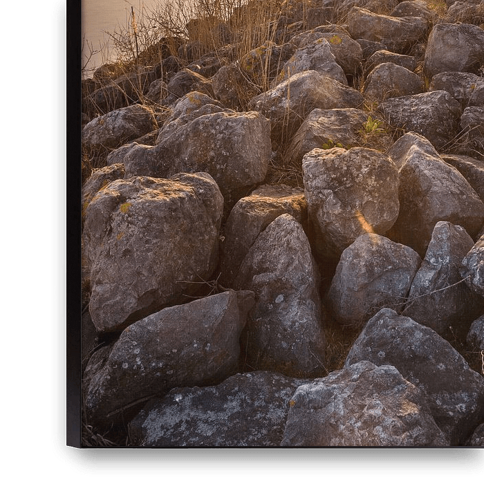 Bestelle dieses moderne Wandbild Sunny Rocks von Chris Snoek als Reproduktion auf Leinwand, Alu-Dibond, als Poster, Fototapete oder Acrylglasbild.