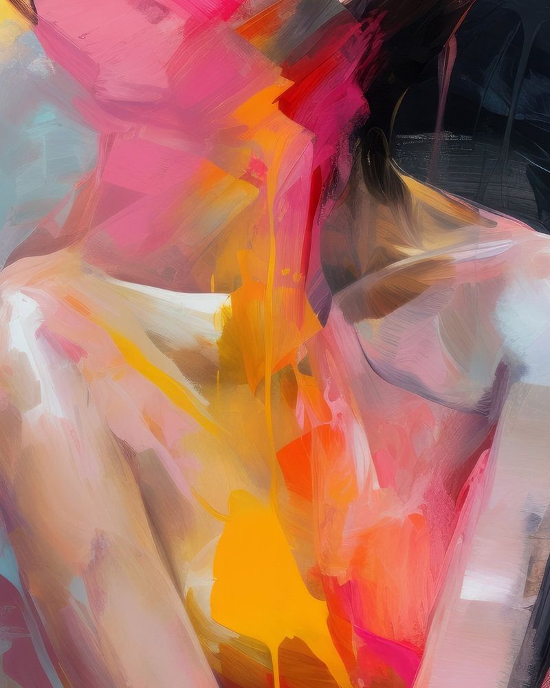 Super buntes figuratives und abstraktes Porträt. Ein echter Hingucker, an dem man sich nicht sattsehen kann. Wählen Sie die Größe und das Material selbst.