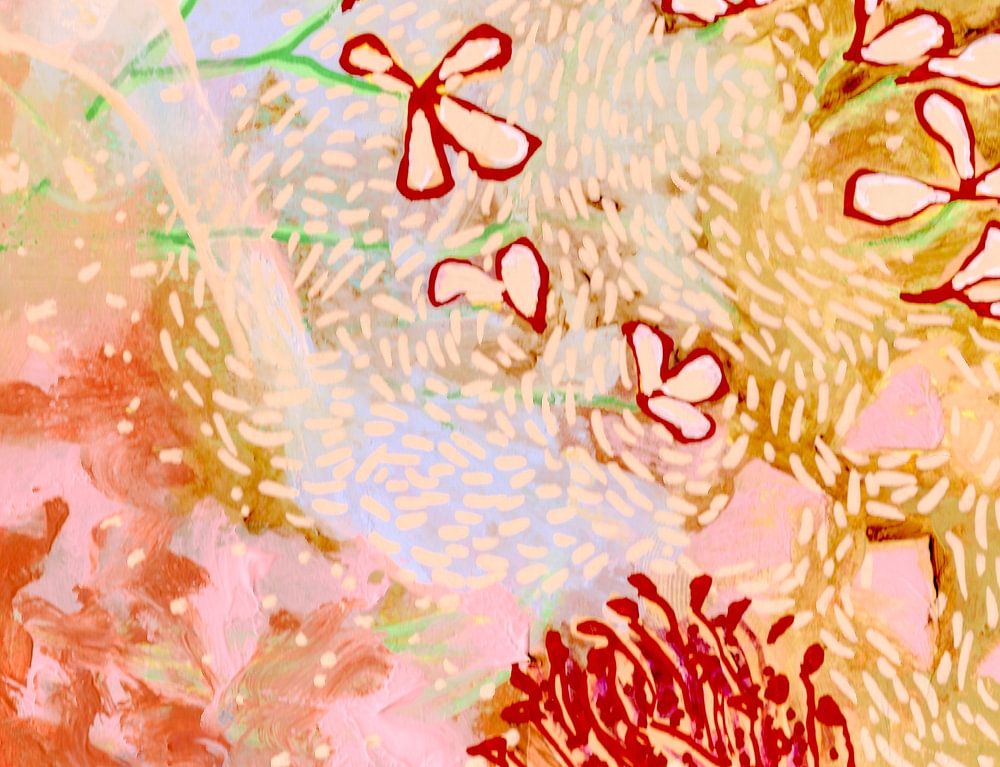 „Sutorïmu“ bedeutet auf Japanisch „Bach“. Es ist ein farbenfrohes, modernes, abstraktes Gemälde mit einigen figurativen Elementen. Ein Blickfang, der zum Träumen einlädt und den man sich ganz nach Belieben auslegen kann. Meine Arbeiten entstehen meist mit Acrylfarbe, Acrylstiften und Ölpastellkreiden. Manchmal wende ich die…