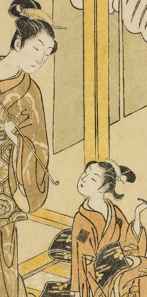 Suzuki Harunobu (1725 - 1770) war ein prominenter japanischer Holzschnittkünstler des 18. Jahrhunderts, der für seine bedeutenden Beiträge zur Ukiyo-e-Kunst bekannt ist. Er wird oft als einer der Pioniere des bunten Holzschnitts angesehen. Harunobu zeichnete sich durch seine zarten und eleganten Darstellungen von Schönheiten, Alltagsszenen und Naturmotiven aus. Er spielte eine wichtige Rolle bei der Entwicklung des Ukiyo-e-Stils und half, die Techniken des Mehrfarbendrucks zu perfektionieren. Harunobus Werke spiegeln die raffinierte Ästhetik und das kulturelle Leben des späten Edo-Zeitalters in Japan wider und sind heute hoch geschätzte Kunstwerke, die seine künstlerische Sensibilität und sein Geschick zur Schau stellen.