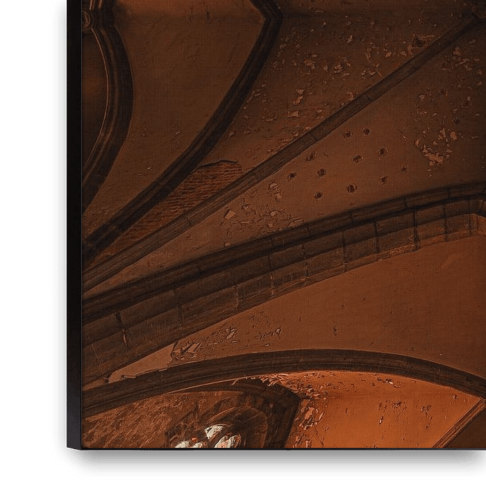Eine kraftvolle abstrakte Skulptur, in der Linien, Formen und Texturen ineinander übergehen. Das Zusammenspiel von Symmetrie und gealterter Architektur schafft eine unaufdringliche und doch monumentale Atmosphäre. Ein stilvoller Kunstdruck, der Ruhe, Tiefe und Charakter in eine moderne oder industrielle Einrichtung bringt.