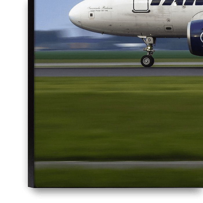 Bestelle das Foto TAROM Airbus A318 rast über die Startbahn des Flughafens Schiphol von Maxwell Pels als Reproduktion auf Leinwand, Alu-Dibond, als Poster, Fototapete oder Acrylglasbild.