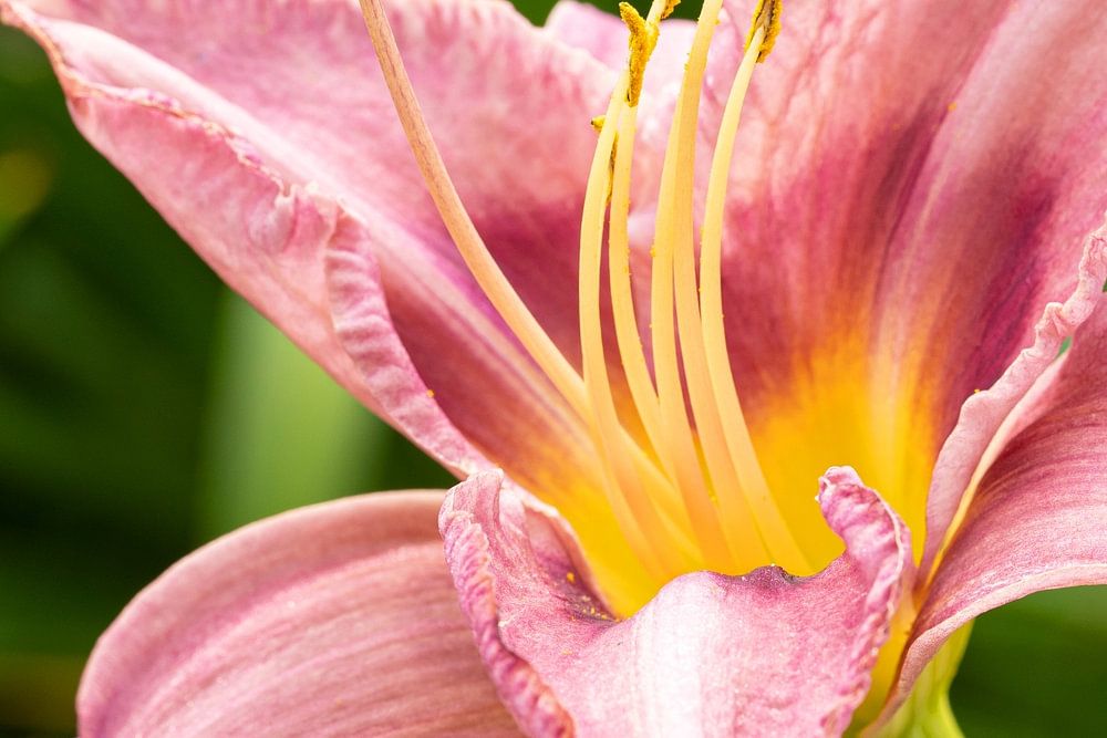 Nahaufnahme der Blüte der Taglilie (Hemerocallis), Sommerzeit im Garten