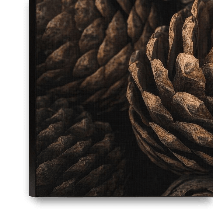 Eine harmonische Ansammlung von Tannenzapfen entfaltet sich in erdigen Brauntönen. Ihre kunstvollen, schuppenartigen Strukturen erzählen Geschichten des Waldes, während Licht und Schatten sanfte Kontraste erzeugen. Der zentrale Zapfen, strahlend und majestätisch, zieht den Blick magisch an und erinnert an die Wunder der Natur. Ein…