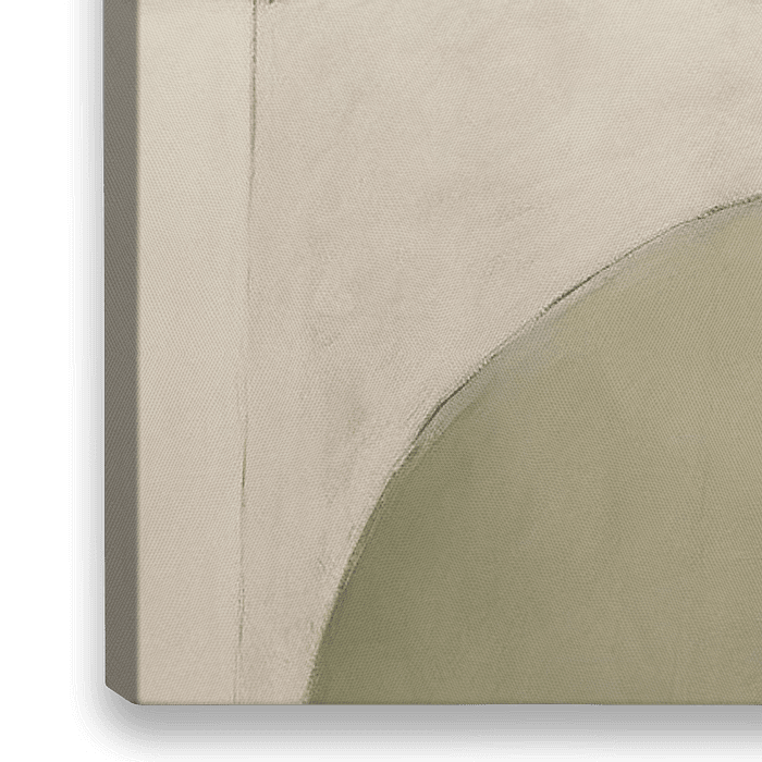 Tanz der Formen - Dieses stilisierte abstrakte Werk spielt mit organischen Formen, die übereinander zu liegen scheinen, wobei weiche Linien und Kurven ein dynamisches und doch ruhiges Bild schaffen. Das Farbschema kombiniert erdige Grün-, Orange- und Brauntöne mit cremefarbenen Akzenten, die zu einem warmen, natürlichen Aussehen…
