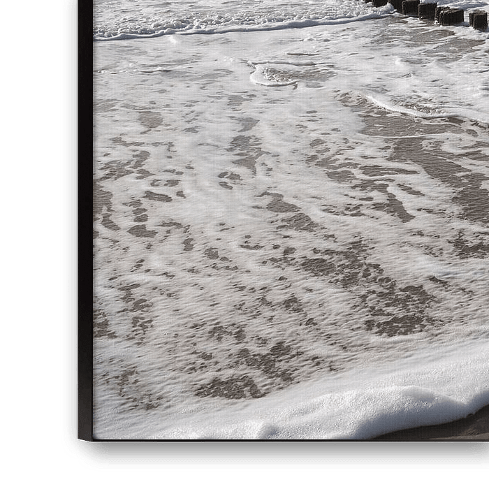 Die salzige Gischt tanzt an den Pfählen entlang, der Wind fegt über das Meer, hebt Schaumkronen und lässt die Wellen gegen das verwitterte Holz kräuseln. Immer wieder entstehen neue Muster, flüchtig und hypnotisierend.