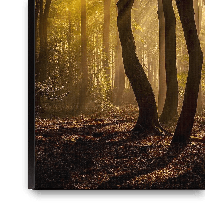 Bestelle dieses Landschafts-Wandbild Tanzende Bäume in der Sonne im Speulderbos in den Niederlanden von Bart Ros als Reproduktion auf Leinwand, Alu-Dibond, als Poster, Fototapete oder Acrylglasbild.