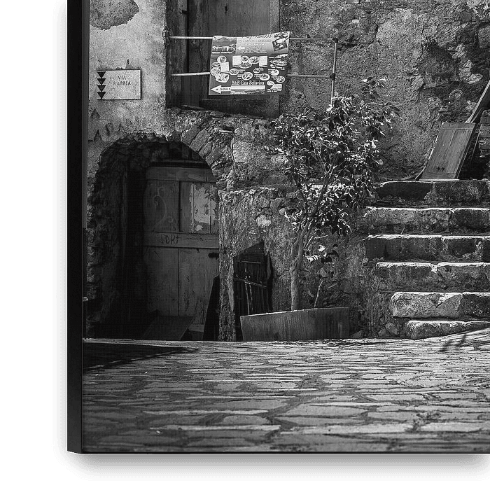 Ihre gewählte Kunst auf Leinwand, gespannt in einem Aluminiumrahmen. Schnell und einfach austauschbar für eine frische Ausstrahlung und ganz nach Ihren Wünschen.