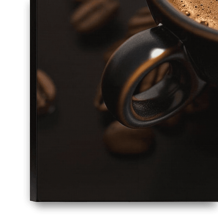 Tassen Kaffee mit Herzbohnen braunes Panoramagemälde mit schönem Stil. Mit schönen Farbtönen und einem einzigartigen Design ist dies ein stilvoller Fotodruck, der in jedem Raum gut aussieht.