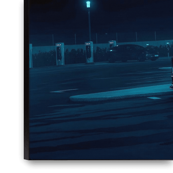 Bestelle das Foto Tesla Model Y von Art Indi als Reproduktion auf Leinwand, Alu-Dibond, als Poster, Fototapete oder Acrylglasbild.