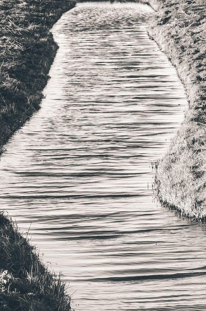 Crispy water in a canal among the fields in Marken peninsula