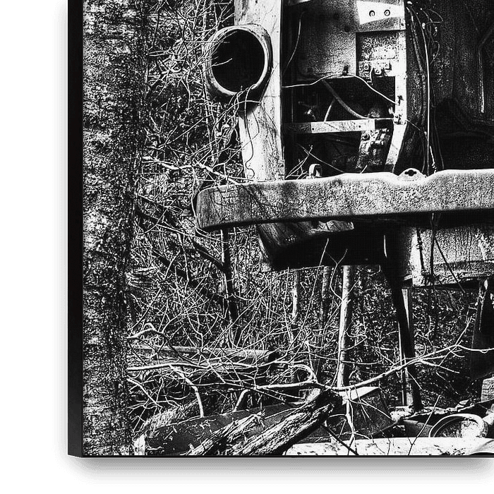 De laatste rustplaats voor deze oude bus. Genomen op Kryko Car Cemetery in Zweden. Het car cemetery is in het midden van een bos en dient als laatste rustplaats voor oude autos. Ook verkrijgbaar in een kleurenversie.
