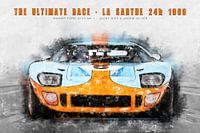 Aquarellgemälde aus einer Serie von Rennwagen, die das ultimative Rennen an der Sarthe, die legendären 24 Stunden von Le Mans, gewonnen haben.