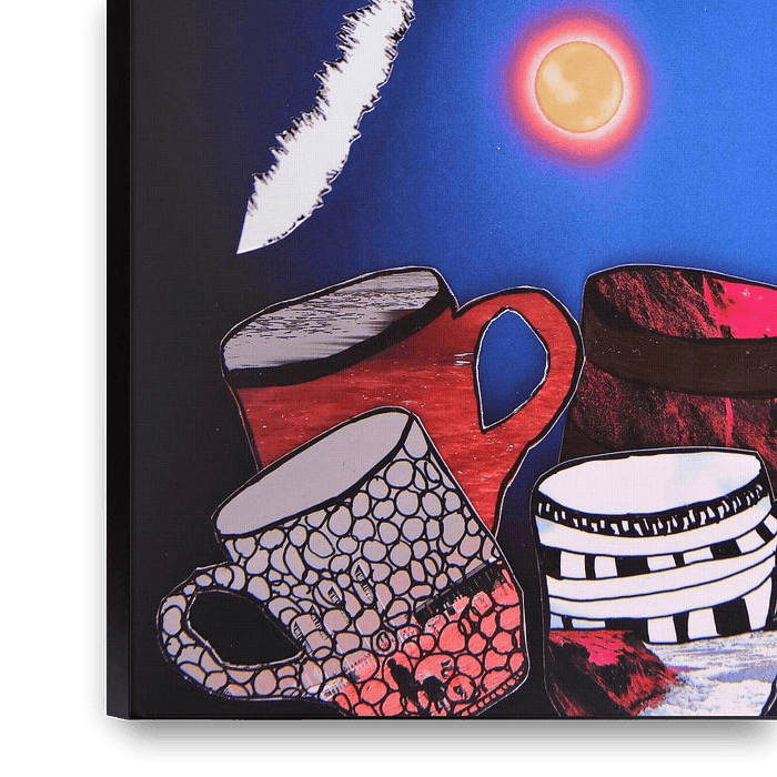Ihre gewählte Kunst auf Leinwand, gespannt in einem Aluminiumrahmen. Schnell und einfach austauschbar für eine frische Ausstrahlung und ganz nach Ihren Wünschen.