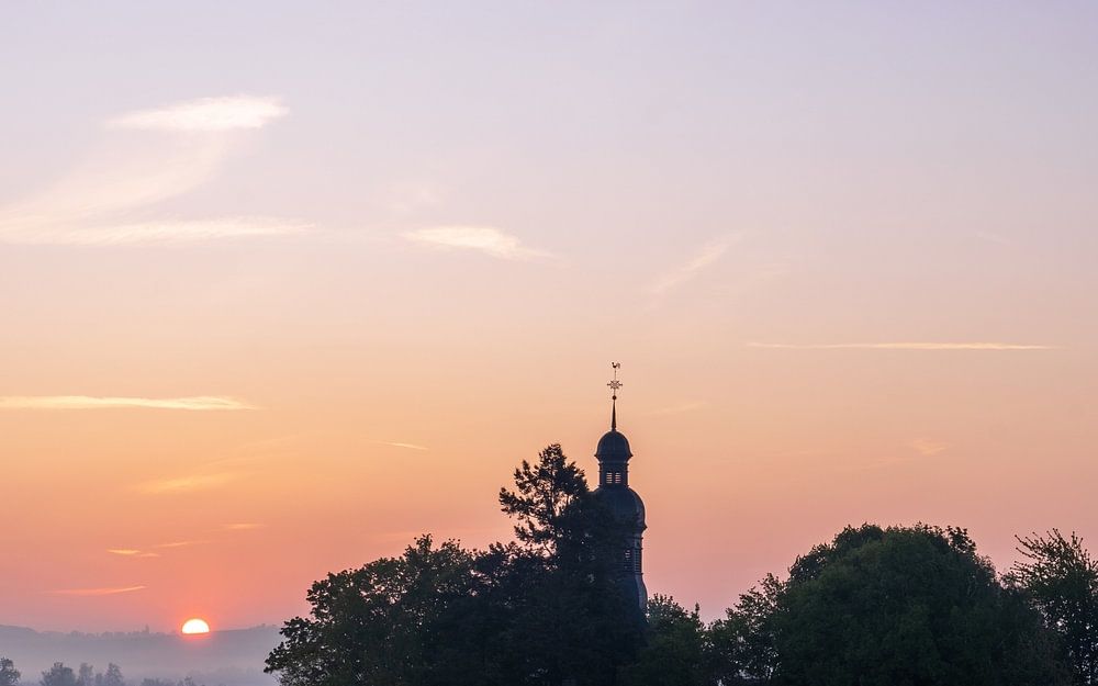 Morgenstimmung an den Thürer Wiesen, Mendig in der Osteifel, Rheinland-Pfalz, Deutschland