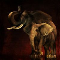 Bestelle das digitale Kunst Bild Tierreich – Elefanten Mutter und Kind von Jan Keteleer als Reproduktion auf Leinwand, Alu-Dibond, als Poster, Fototapete oder Acrylglasbild.