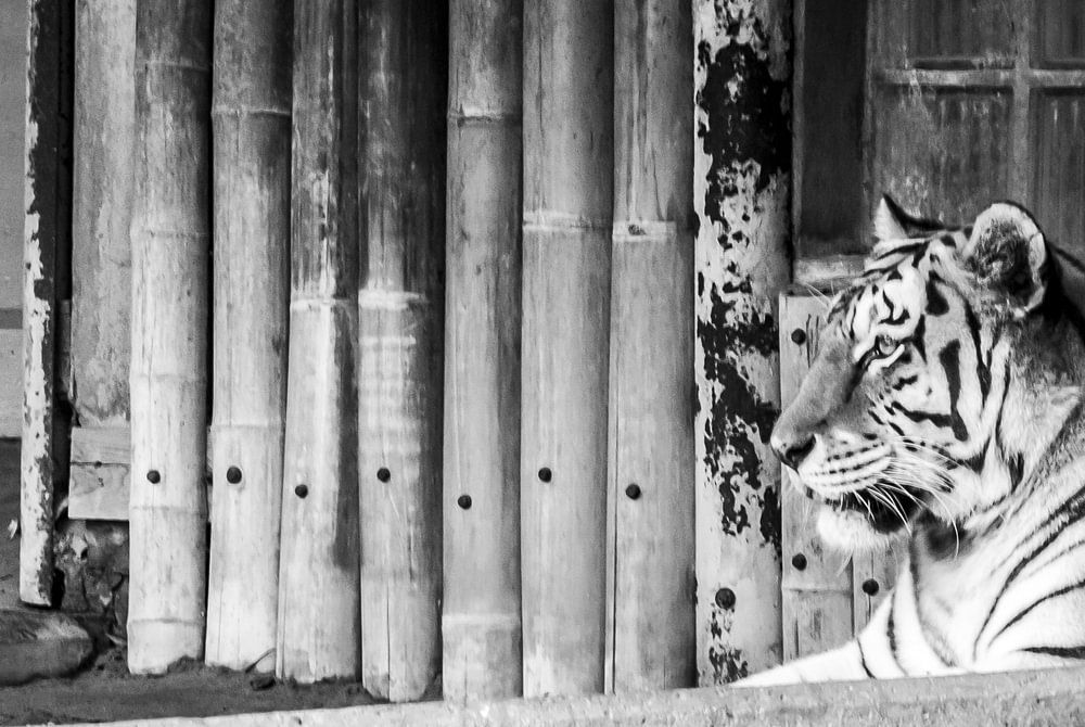 Deze tijger ligt heerlijk ontspannen te genieten van de zon. Een foto als deze, waar je hem ook hangt, brengt rust in huis.