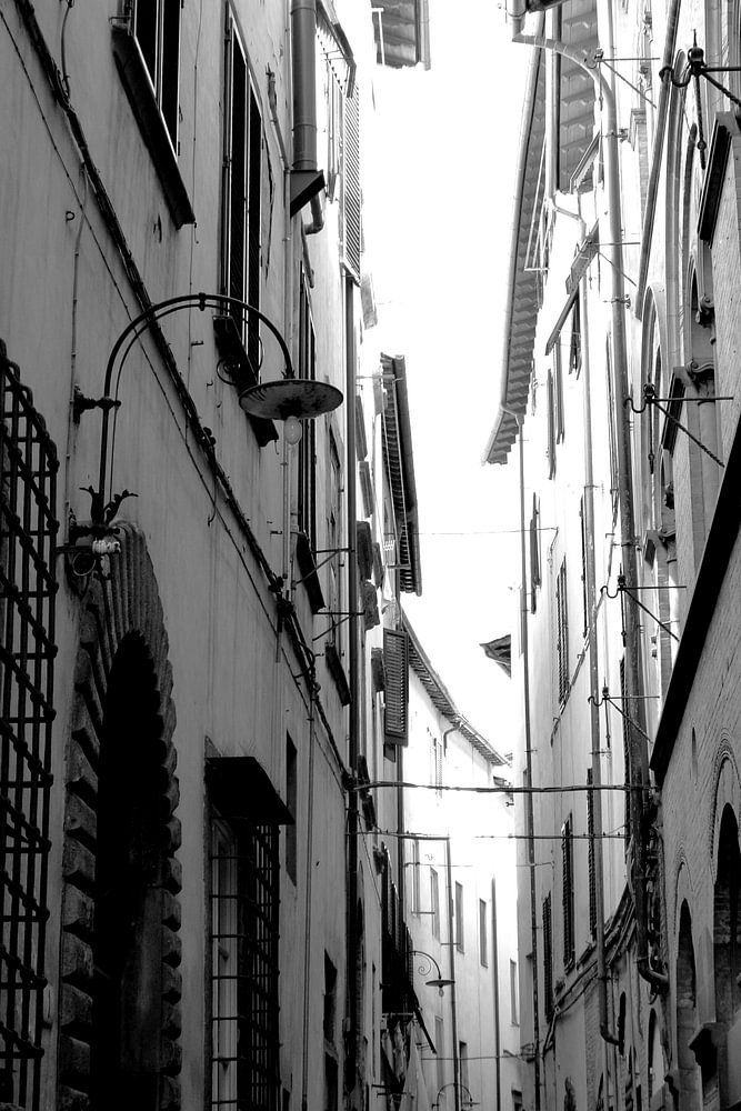 Innenstadt von Lucca Toskana Italien in Schwarz und Weiß.