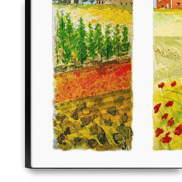 Bestelle diese Malerei Toskanische Landschaften | Aquarellmalerei | Diptychon von WatercolorWall als Reproduktion auf Leinwand, Alu-Dibond, als Poster, Fototapete oder Acrylglasbild.