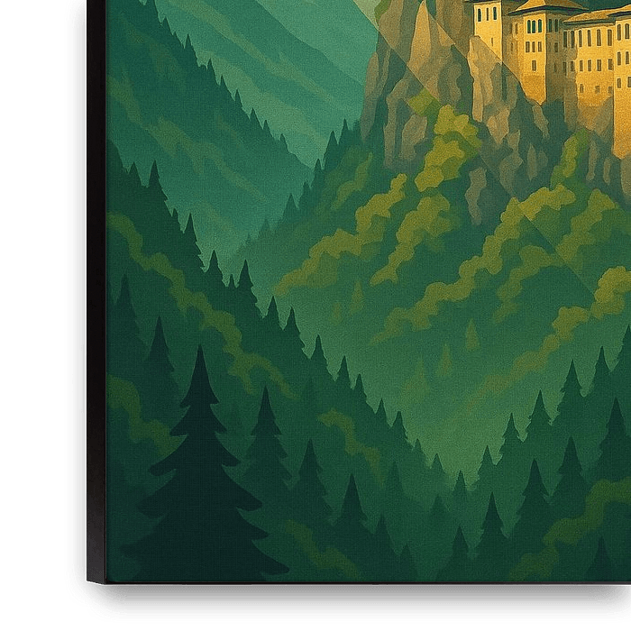 Bestelle dieses Landschafts-Wandbild Trabzon Art Deco Poster - Sumela-Kloster Wanddruck von Travel Shop als Reproduktion auf Leinwand, Alu-Dibond, als Poster, Fototapete oder Acrylglasbild.