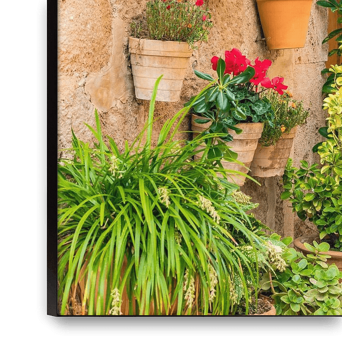 Bestelle dieses Blumen-Wandbild Traditioneller Topfblumenschmuck in Valldemossa auf Mallorca von Alex Winter als Reproduktion auf Leinwand, Alu-Dibond, als Poster, Fototapete oder Acrylglasbild.