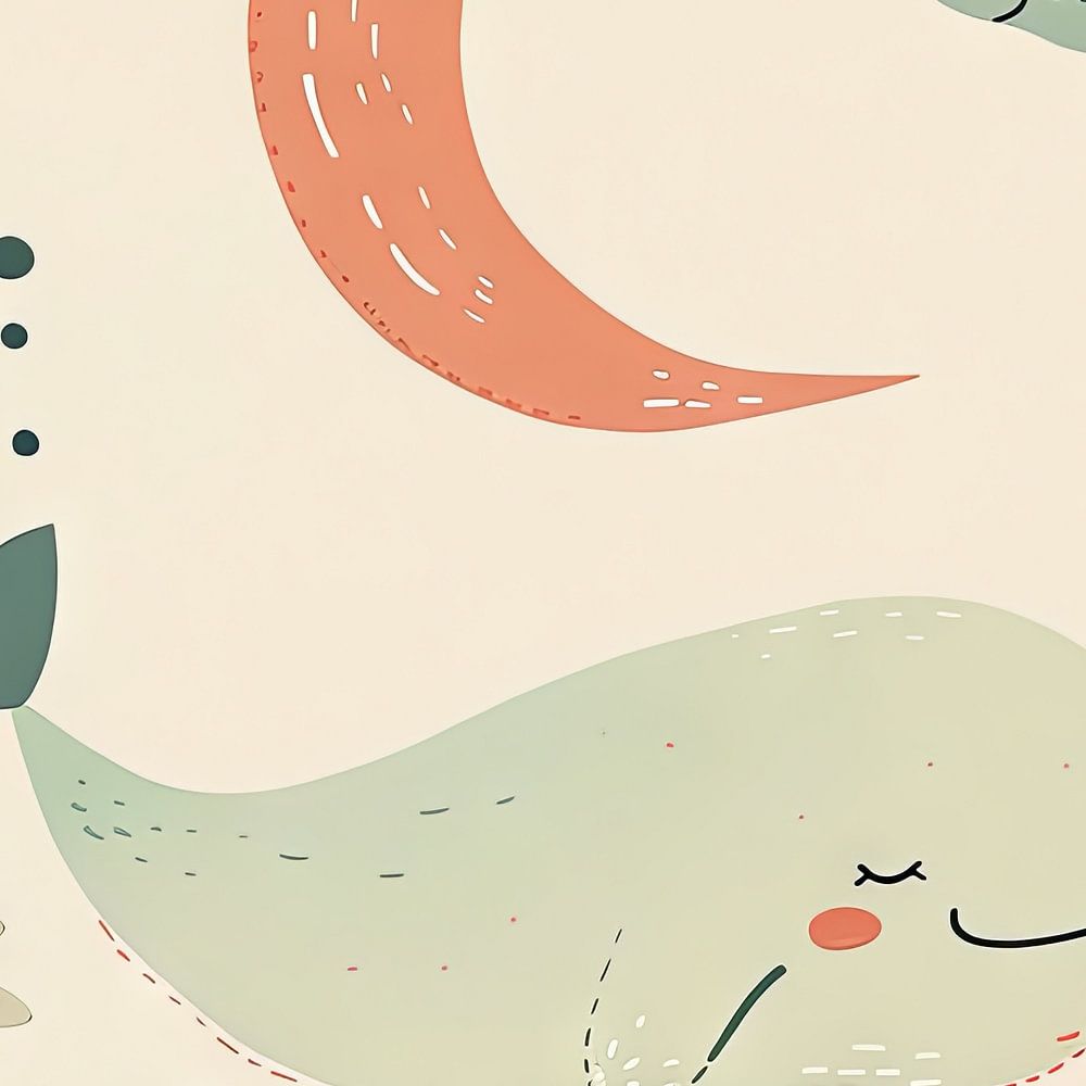 Dieses bezaubernde Kunstwerk zeigt einen niedlichen, schlafenden Wal unter einem sanft leuchtenden Mond. Die weichen Pastelltöne und das verspielte Design schaffen eine beruhigende Atmosphäre, perfekt für das Kinderzimmer. Kleine Fische schwimmen um den Wal herum, während der Mond sanft über die Szene wacht. Ideal, um eine entspannende und friedliche Umgebung für Ihre Kleinen zu schaffen, die zu süßen Träumen einlädt.