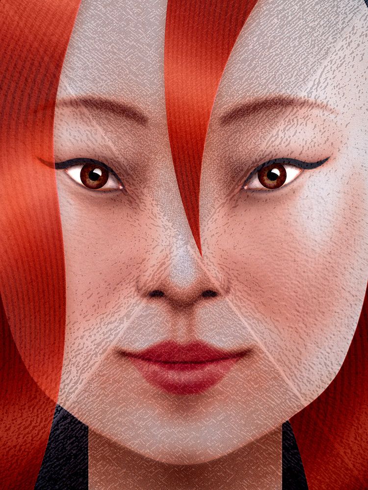 Wenn doch nur viele Menschen auf dieser Welt transparent, offen und ehrlich wären. Von dieser Transparenz inspiriert, entstand dieses Werk. Das Gesicht und die Haare sind transparent, und das gibt dem Ganzen eine schöne Wirkung. Natürlich hat das nichts damit zu tun.