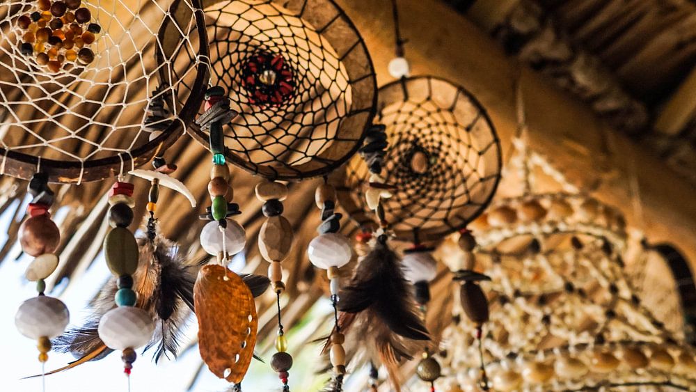Traumfänger hingen auf einem Markt in der Nähe von Dumaguete auf den Philippinen.