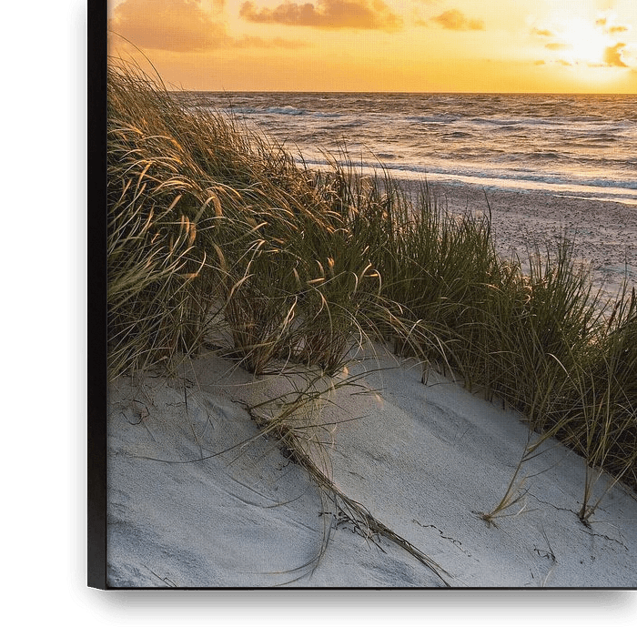 Ihre gewählte Kunst auf Leinwand, gespannt in einem Aluminiumrahmen. Schnell und einfach austauschbar für eine frische Ausstrahlung und ganz nach Ihren Wünschen.