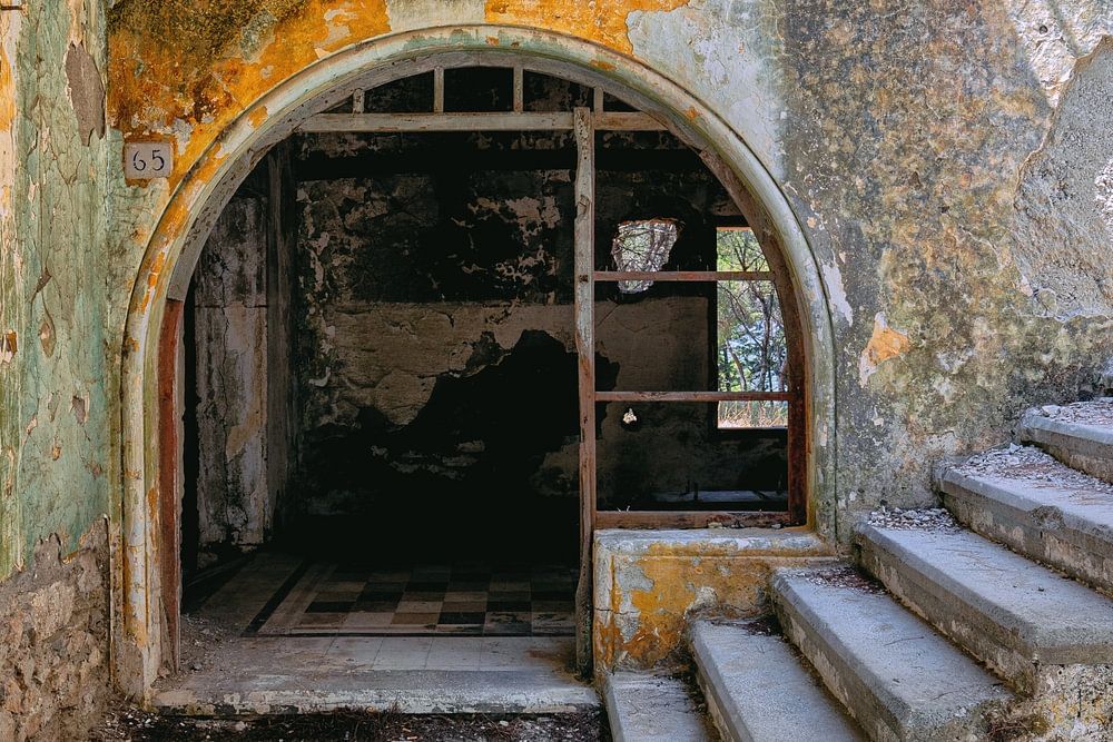 Lost places auf der Insel Rhodos in Griechenland. Dieses Gebäude wurde von den italienischen Besatzern 1936 in Eleousa auf der Insel Rhodos erbaut.