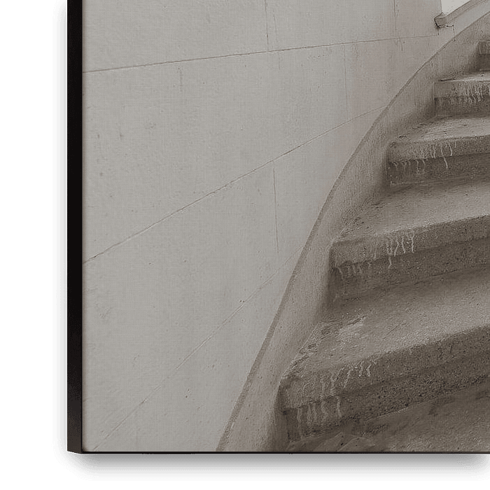 Bestelle dieses abstrakte Wandbild Treppenhaus in einer Militärstadt von John Noppen als Reproduktion auf Leinwand, Alu-Dibond, als Poster, Fototapete oder Acrylglasbild.