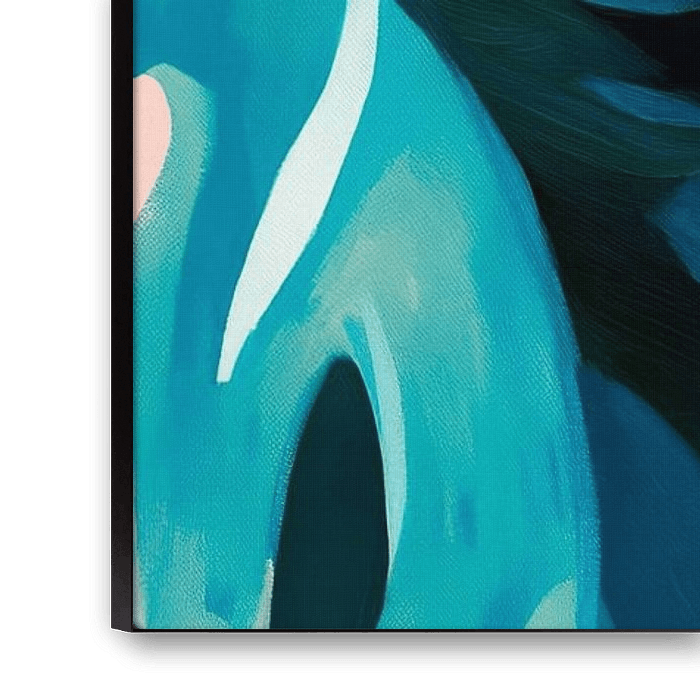 Die lebendigen, tiefgrünen Blätter tanzen elegant auf einem sanften, pastellfarbenen Hintergrund und verleihen dem Raum eine frische, beruhigende Atmosphäre. Dieses kunstvolle Werk passt perfekt in die Küche oder das Wohnzimmer, wo es die Natur ins Zuhause bringt und ein Gefühl von Harmonie und Lebendigkeit erzeugt.