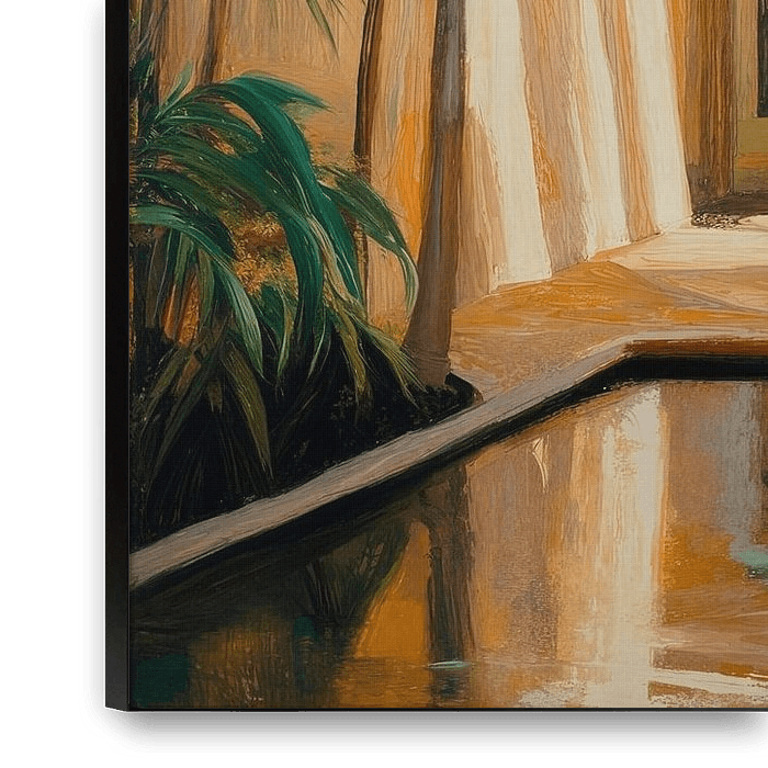 Bestelle diese Malerei Tropischer Innenhof von Poster Art Shop als Reproduktion auf Leinwand, Alu-Dibond, als Poster, Fototapete oder Acrylglasbild.