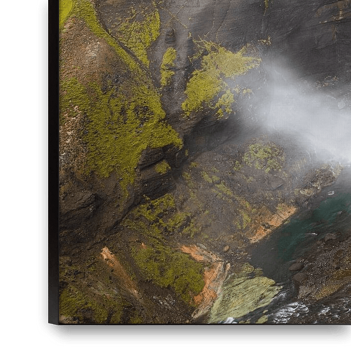 Bestelle dieses Landschafts-Wandbild Trostlose Landschaft mit Wasserfällen in einer tiefen Schlucht in Island von Chris Stenger als Reproduktion auf Leinwand, Alu-Dibond, als Poster, Fototapete oder Acrylglasbild.