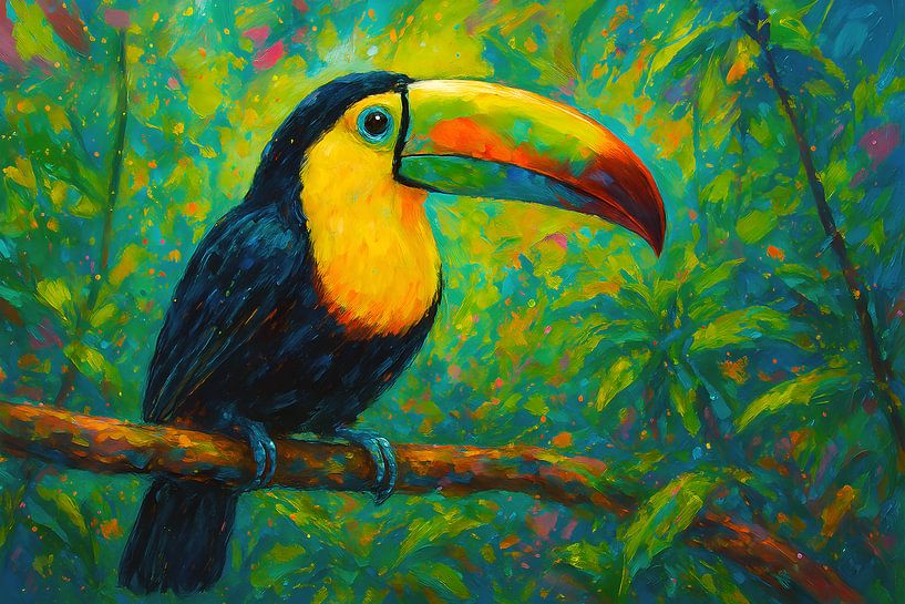 Bestelle dieses Vögel Wandbild Tukan Malerei. von Johannes als Reproduktion auf Leinwand, Alu-Dibond, als Poster, Fototapete, ArtFrame oder Acrylglasbild, maßgefertigt in höchster Qualität.