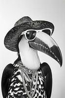 Ein Porträt eines Tukans in modischer Kleidung und Accessoires, darunter ein Hut und eine Brille. Perfekt für stilvolle und kreative Darstellungen.