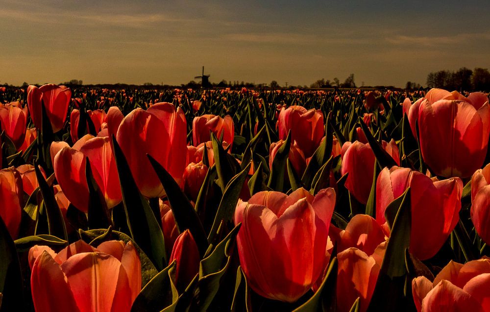 Tulpenfeld entlang der Autobahn A9 bei Alkmaar
