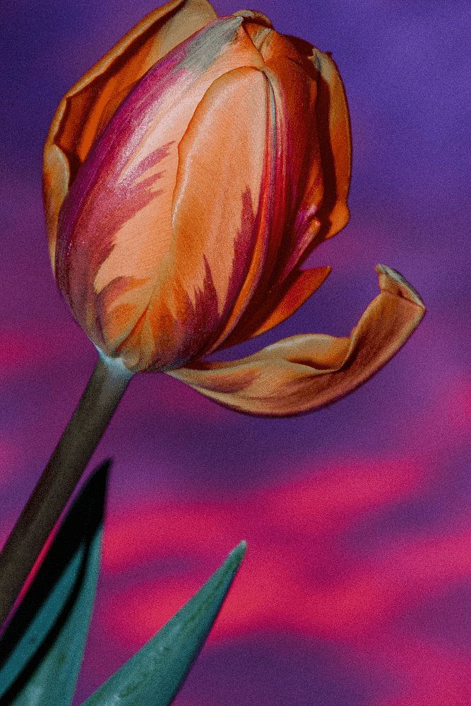 Ich habe die Tulpen in die Luft gehalten, so dass man diesen wunderschönen farbigen Himmel als Hintergrund für die Tulpen hat.