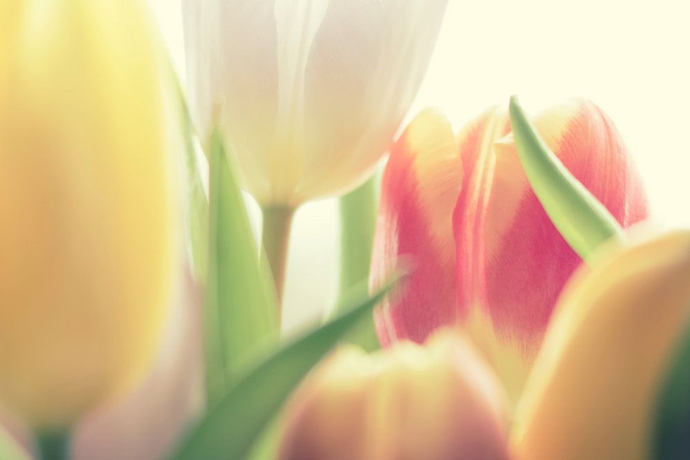 Warum auf den Frühling warten, wenn es jeden Tag ein bisschen Frühling sein kann? Mit diesen Tulpen in Pastellfarben an der Wand kommt die Wärme automatisch ins Haus. Ob im Wohnzimmer, im Schlafzimmer oder im Büro, überall scheint sofort die Sonne. Die Pastellfarben machen diese Tulpen freundlich und weich.