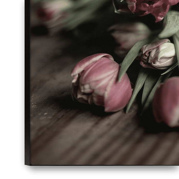 Dies ist ein intimes Stillleben, wo Tiefe, um das Foto aufgenommen wurde. Wenn Sie sich auf einige Tulpen konzentrieren, wird Ihre Aufmerksamkeit automatisch auf diese Tulpen gelenkt.