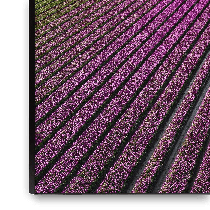 Bestelle dieses Blumen-Wandbild Tulpen in Gelb und Violett auf landwirtschaftlichen Feldern im Frühling von Sjoerd van der Wal Fotografie als Reproduktion auf Leinwand, Alu-Dibond, als Poster, Fototapete oder Acrylglasbild.
