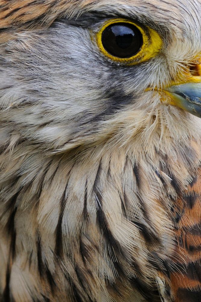 Turmfalke ( Falco tinnunculus ), junges Weibchen, Kopfporträt, Portrait, detaillierte Ansicht