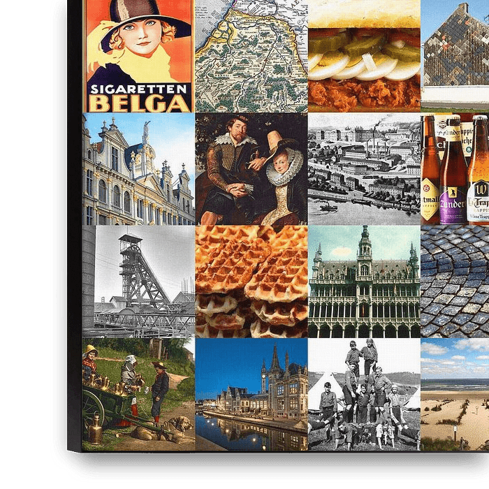 Ich habe diese Collage aus allen möglichen typischen belgischen Gebäuden, Kunst, Geschichte, Essen und Kultur zusammengestellt. Sie können Antwerpen, Brüssel, Gent und Brügge, Künstler wie Magritte, Brueghel und Rubens, aber auch alte Fotografien aus der Geschichte sehen. Können Sie sie alle erkennen und benennen?